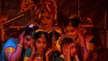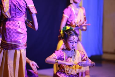 Explore our Bharatanatyam classes for all ages and skill levels, from beginners to advanced.